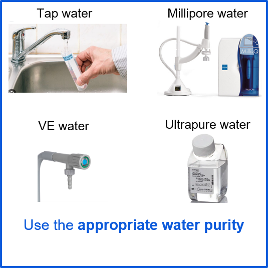 Millipore water: Buffer, incubator water bath, sample dilution, ...